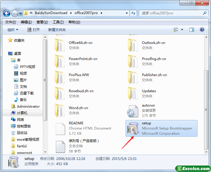 1、我们下载完office2007以后,把文件解压出来,然后双击“setup”文件,如图1所示。