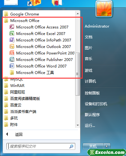 7、我们来开始菜单找到office2007的文件夹,打开excel2007即可。
