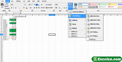 我们拿到一组excel表格数据以后,一般都是要对其对数值进行排序,今天我们要为一个企业的利润表来进行排序,我们可以进行排序但是有一个问题我们虽然可以看得出来排序的结果个大小,但是各个企业的名称就混乱了,有时候领导又非常喜欢看企业名称一路拍下来,怎么办呢,我们可以通过excel2010的条件格式功能来实现。