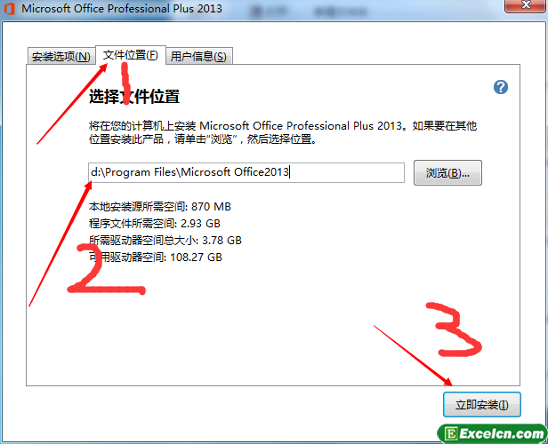 4、我们一般推荐大家把office安装到D盘,把C换成D就可以了,其他不用修改,然后单击“立即安装”按钮。