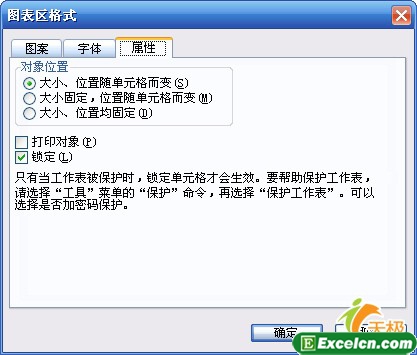 2、在“图表区格式”对话框中单击“属性”选项卡,然后取消选择复选框“打印对象”,如图2所示。