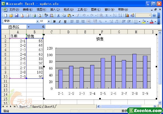 利用excel图表看数据是非常方便的,一个朋友每天用excel图表来记录每天的销售成绩,有一天他问我能不能实时的更新每天的数据,今天我们就来学习一下在excel中如何让图表显示实时数据。