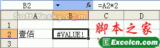 具体实例:如图15的工作表,A2单元格中的“壹佰”是文本类型的,如果在B2中输入公式“=A2*2”,就把文本参与了数值运算,因此出错。改正方法为把文本改为数值即可。
