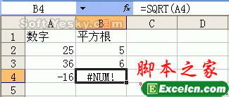 具体实例:在如图14所示的工作表中,我们要求数字的平方根,在B2中输入公式“=SQRT(A2)”并复制到B4单元格,由于A4中的数字为“-16”,不能对负数开平方,这是个无效的参数,因此出现了“#NUM!”错误。修改的方法为把负数改为正数即可。