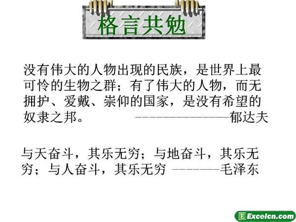 大家看到的PPT模板人教版七年级语文《艰难的国运与雄健的国民》课件是由excel学习网为您提供的,该PPT模板的后缀名为.ppt,此PPT模板是人教版七年级语文《艰难的国运与雄健的国民》的PPT课件,各位老师可以通过本站免费下载此ppt课件,在本站可以免费下载使用,您还可以使用PPT对该模板进行修改和设置成为自己所需的样式。