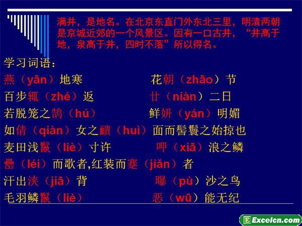 大家看到的PPT模板人教版八年级语文下册第29课《满井游记》ppt课件是由excel学习网为您提供的,该PPT模板的后缀名为.ppt,该ppt模板是人教版八年级语文下册第29课《满井游记》的课件,用于多媒体课程使用,共24页,在本站可以免费下载使用,您还可以使用PPT对该模板进行修改和设置成为自己所需的样式。