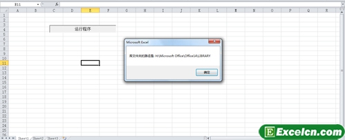我们在excel中写下的VBA语句来显示EXCEL库文件的路径。Public Sub EXCEL库文件路径() MsgBox "Application.LibraryPathEnd Sub 运行这个VBA之后,会在EXCEL中显示一个对话框,标明EXCEL库文件的路径。