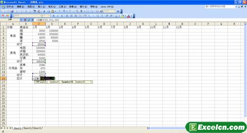 在excel中使用SUM函数计算求和