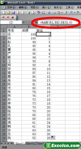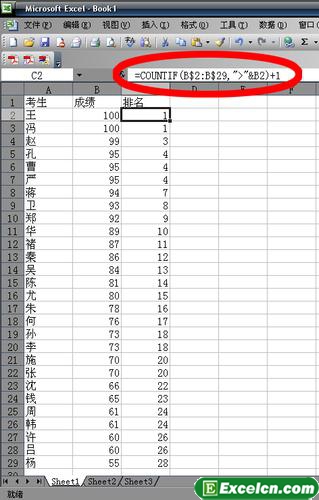 学生考试会得到不同的成绩,老师总是要按成绩高低排名次,我想每个人在上学时都经历过,过去是人工排,现在用Excel,根据成绩高低在excel中自动填上排名。但是这个排名仅仅是单元格的序号,即使是成绩相同,也会是不同的名次。而我们知道,成绩相同,排名应该是一样的,那就让EXCEL自动把成绩相同的人排成同一名吧。