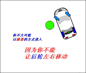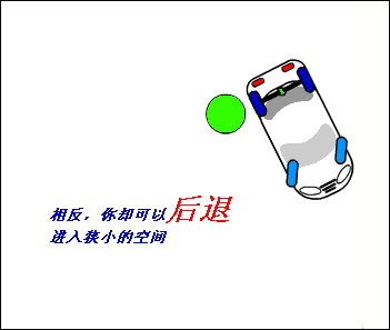 3、你不可能以前进的方式进入狭小的空间,因为后轮不能左右移动,相反,你却可以后退的方式进入,倒车甚至可以曲折通过多重障碍。当然要根据当时的环境选择进还是倒。