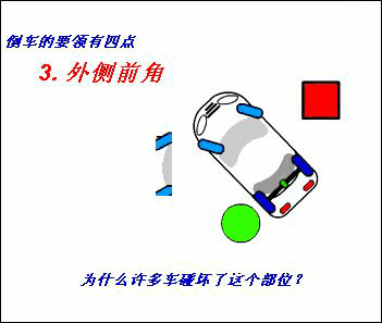 3、外车前角,如下图,不要顾腚不顾头,这就是车右前方经常撞的原因。