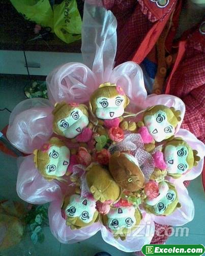 前段时间参加朋友的婚礼看到了新娘捧了一束公仔手捧花,而且婚礼现场出现了很多公仔,感觉整个婚礼非常温馨,那一束公仔花束让我记忆犹新,于是闲来无事今天我也根据公仔花束制作图解来给自己做了一束公仔花束,虽然制作完成了,但是感觉还是没有新娘的那一朵漂亮,大家限的时候也可以学着制作一下啊。