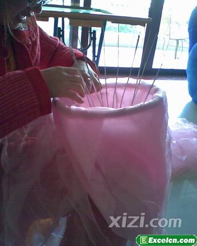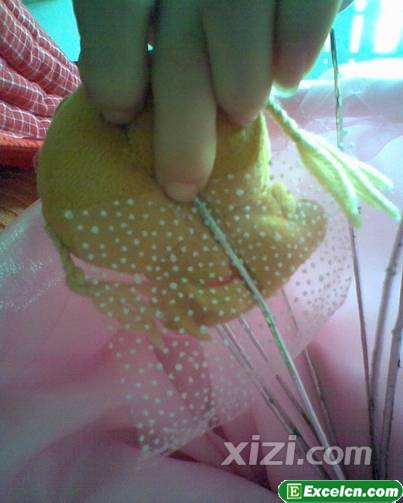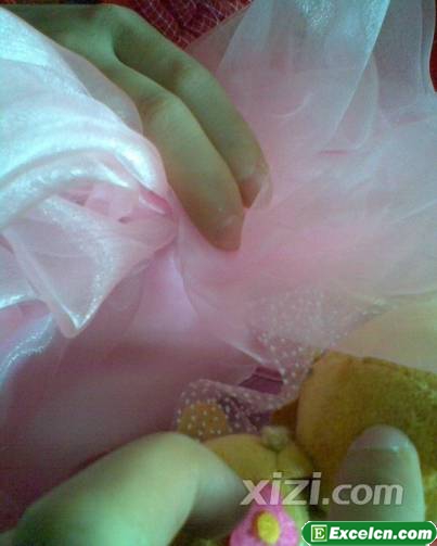 之前那个小熊手捧花,花边是用铁丝,比较重,这次改良为竹片,轻点,也比较好固定,尤其对MM来说...