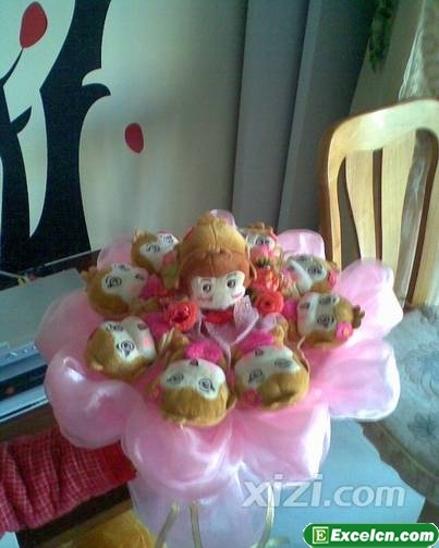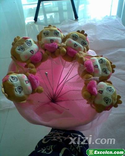 上面的公仔花束制作图解所用的东西都是通过某宝买来的,你懂得,其实做这个公仔手捧花不一定要在结婚的时候用,大家也可以当成我们的家居装饰品。大家可以发挥自己的想像力来制作,比如棒棒糖花束,棉花糖花束等等。
