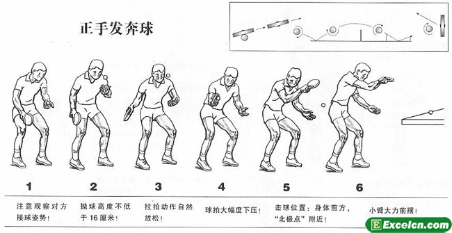 上面的乒乓球发球技术图解是最长见的也是非常适合初学者的一种正手发球教程,也叫正手发奔球,其主要特点是球速快、落点长、冲力大对对方的威胁比较大。