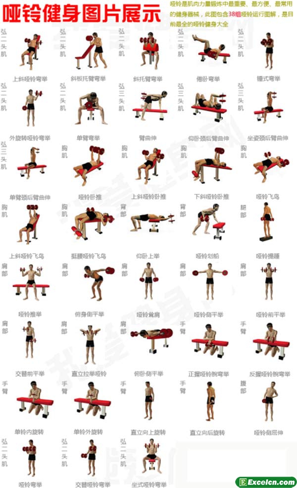 哑铃很多朋友都玩过,哑铃是可以锻炼全身肌肉的一款健身器材,因其携带方便被很多人使用,一般男士利用哑铃健身的比较多,今天小编放出的男子哑铃健身图解供大家参考学习,里面几乎包含了所有的哑铃健身图解大全,让大家可以了解一下哑铃是如何锻炼身体的其他部位的。
