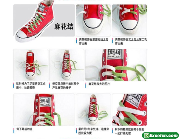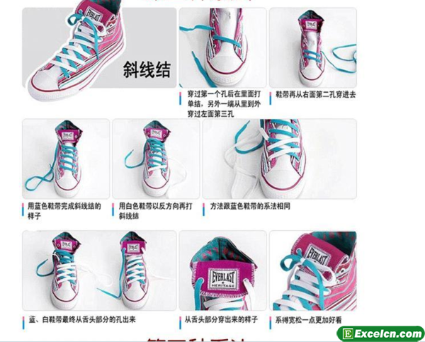 上面一共给大家推荐了4中高帮鞋带的系法图解,大家可以每隔一天换一种系鞋带的方法,保证让你在朋友中眼前一亮,还有更多的系鞋带方法,欢迎大家都分享出来。