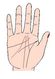 命运线的一部分在生命线上,另一条命运线从手腕的中央伸起,主这些人受父母恩泽而外,能发自己的力量奋斗努力;大多数大学毕业后,自食其力以建立家庭。