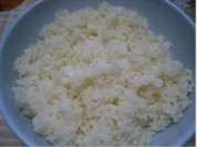 4、新蒸熟的米饭打散,盛出一碗,倒入少许苹果醋,撒入适量盐,鸡精拌匀。
