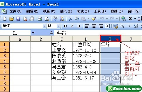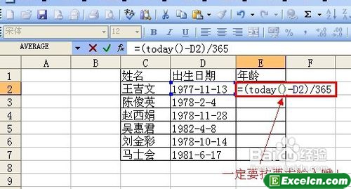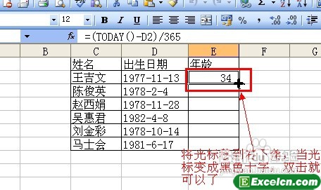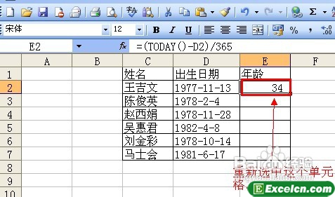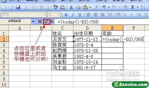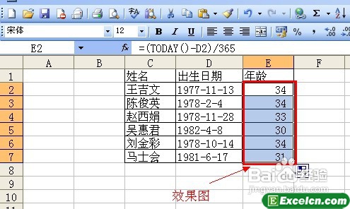 10、这样就计算出了所有人的年龄了,如图是最终效果。