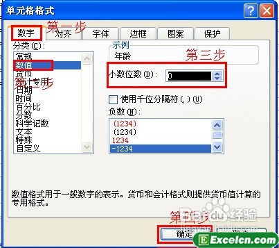 4、在数字选项中,选择数值型,小数位数选择“0”,单击确定;