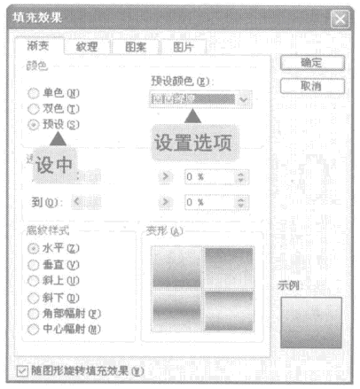 3、弹出“填充效果”对话框,在“颜色”选项组中选择“预设”单选按钮,然后在“预设颜色”下拉列表框中选择“茵茵绿原”选项,完成后单击“确定”按钮。