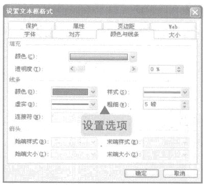4、返回“设置文本框格式”对话框,在“线条”选项组中的“颜色”下拉列表框中选择“红色”,在“虚实”下拉列表框中选择“实线”选项,在“样下拉列表框中选择“4.5磅”的线条样式:然后在“粗细”微调框中选择“5磅”选项。