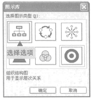 2、弹出“图示库”对话框,选择“组织结构图”选项,单击“确定”按钮。
