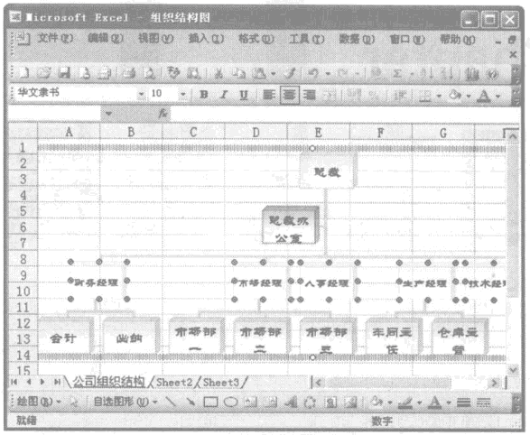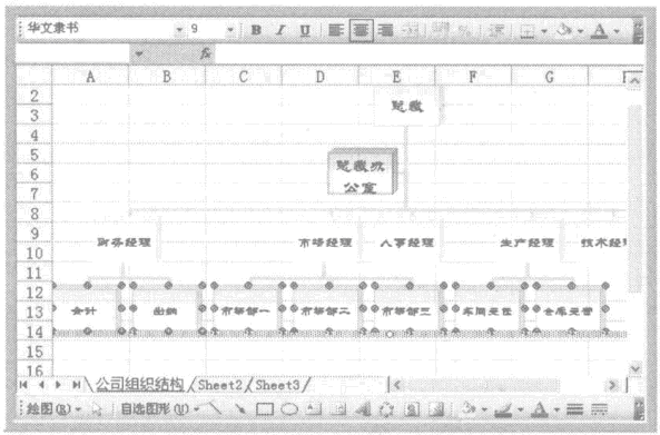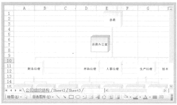11、返回excel工作表中,可以看到设置组织结构图的最终效果,其中设置了边框和背景颜色。