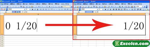 其实很简单,我们在excel单元格中输入分数的时候,只要在前面加一个数字“0”和空格以示与日期的区别,比如“0 1/20”,这样excel单元格就不会被判为日期了,如果在EXCEL单元格中输入的是“1 1/20”的话,EXCEL单元格里显示“1 1/20”,而在编辑栏里则显示的是“1.05”。