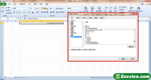 2、选择数字标签,然后在分类中选择自定义项目。随便选择一种格式,在类型中输入重复的部分,如北京市宣武区的身份证号前六位是“110104”,在类型中输入110104000000000000,也就是用数字0将其补全,确定之后,再在EXCEL2010中输入身份证号,只要输入110104之后的数字就可以了。