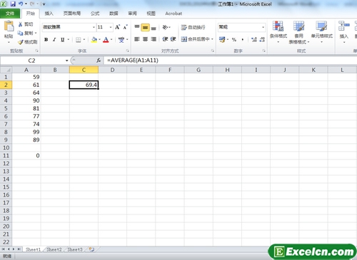 例子:以学生成绩为例,这次需要统计的是学生的平均分。我们可以在指定单元格内输入“=AVERAGE(A1:A11)”,这样就可以计算指定范围内的学生成绩的平均数了。 如果在成绩列中有空单元格或为0的单元格的时候,AVERAGE函数的计算方法是忽略空白单元格而计算“0”单元格。这样计算出来和平均数是准确的。如例中,共11个学生,其中一个是缺考,一个是0分,总成绩是694分,忽略空白单元格后平均分是69.4分。