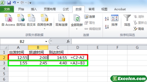 在excel中对时间进行加减法