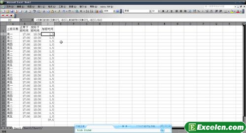 例如计算每天的加班时间,加总出一个月的时间后按实际加班时间计算加班费,那么,用下班时间减去上班时间得到的差再减去每天8小时正常工作时间,得到的就是每天的加班时间,一个月以后把这些加班时间加在一起就是一个月的加班时间,但是最后加总的时候我们会发现出现了错误,以每天加班1.5小时计算,25个工作日的加班时间应为37.5小时,但是在EXCEL表中却成了13.5小时(13:30),这是怎么回事呢?经过认真的分析及反复计算检查后发现:EXCEL时间是以24小时为基准计算的,也即24小时后再从0开始计算,所以就出现了上面的这种情况。