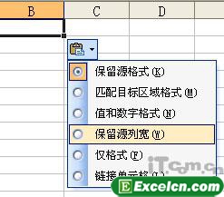 使粘出的excel表格保留源列宽