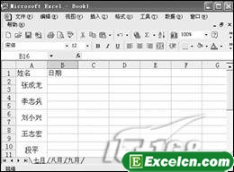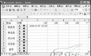首先要进行的工作当然就是新建工作簿,在工作表中输入姓名、日期,制订考勤表的基本框架。