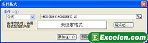 2、在“条件格式”对话框中,单击“条件1(1)”的下拉箭头,在列表中选择“公式”项,在右边的文本框中输入公式:=MOD(ROW()+COLUMN(),2)