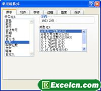 在“分类”列表框选择“分数”项,示例内容中的数值以分数形式显示,如图6所示。