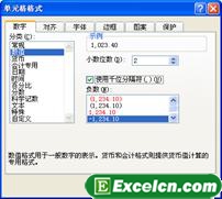 3、在“分类”列表框中选择“数值”项,然后勾选“使用千位分隔符”复选框,示例内容会发生改变,如图3所示。