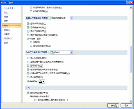 2、弹出【Excel选项】对话框,单击【高级】标签,在【为此工作表显示以下选项】组中,取消选中【显示分页符】复选框,可以在工作表中隐藏分页符;选中【显示分页符】复选框,则可以在工作表中显示分页符。