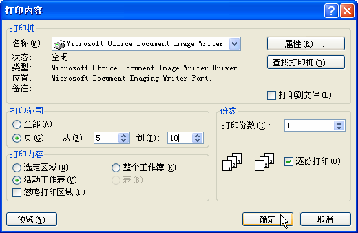 4、单击 【页】 单选按钮,再单击其右侧的微调按钮可以设置打印的起始范围。
