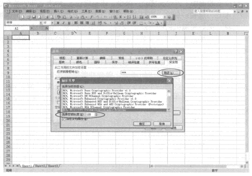在给投标报告加密之后,你的工作簿真的就安全了么?据统计,在网上流行的专门破解密码的软件达到200多种,如果你仅仅通过设置简单的密码,根本抵挡不了这些高级破解软件的攻击。但是你可能会问,我如果设置长密码忘记了怎么办?这确实是个问题,那我们该怎么办7其实我们可以通过给密码加密的方式让短密码更加安全。Excel为你提供了更加高级的功能,如图4所示你会看到【安全性】标签中有一个【高级】按钮,你可以单击这个按钮来选择你密码的加密类型,密钥长度越长的类型对于你的工作簿来说就越安全。