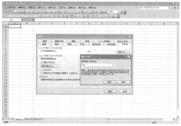 我们还可以通过另外一种方法来加密工作簿,单击菜单栏中的【工具】一【保护】一【保护工作簿】命令来为工作簿加密。如图5所示,在【保护工作簿】窗口中,有【结构】和【窗口】两个复选框。若要保护工作簿的结构,请勾选【结构】复选框,这样工作簿中的工作表将不能进行移动、删除、隐藏、取消隐藏或重新命名,而且也不能插入新的工作表,除非关掉保护;若要保护工作簿的窗口,请勾选【窗口】复选框,这样用户将不能在工作簿打开时改变工作簿窗口的大小和位置,且不能移动、改变大小或关闭窗口。但是,可以隐藏或取消隐藏窗口。以上操作,如果未设定密码,则可以通过单击菜单栏中的【工具】一【保护】一【撤销保护工作簿】命令来解除对工作簿的保护,但是如果加入密码,则必须输入密码之后才能解除对工作簿的保护。